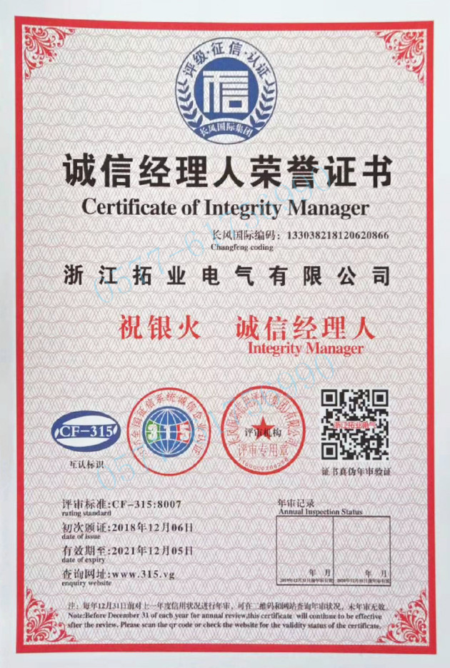 • 拓業電氣公司認為誠信、務實、高效、創新、尊重是與客戶間友好合作的基礎,寬容是解決問題的前提,創新是發展事業的重要利器,服務是創造價值的根本。致力于為客戶、員工、股東傳遞領先價值......